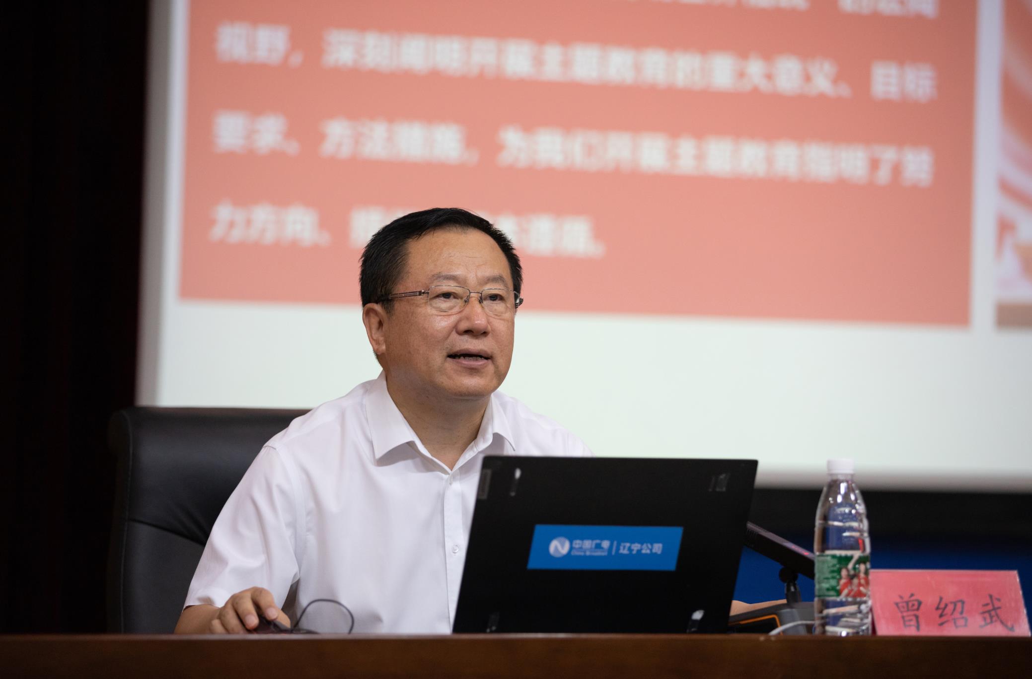 曾绍武董事长结合公司经营管理实际,以“在主题教育中汲取智慧和力量 奋力谱写辽宁广电发展新篇章”为主题,围绕“为什么学?学什么?怎么学?怎么干?”四个方面进行系统解读,阐述了开展主题教育的必要性,对公司开展主题教育活动提出四点具体要求。一是深刻认识开展这次主题教育的重大意义,切实增强政治责任感和历史使命感。开展学习贯彻习近平新时代中国特色社会主义思想主题教育,对于推动全党更加深刻领悟“两个确立”的决定性意义,更加自觉增强“四个意识”、坚定“四个自信”、做到“两个维护”,更加紧密地团结在以习近平同志为核心的党中央周围,完成在新时代新征程的使命任务,具有重大意义。公司各级党组织和广大党员干部必须要坚持以习近平新时代中国特色社会主义思想为指引,牢牢把握主题教育“坚持学思用贯通、知信行统一”这一根本任务,努力在以学铸魂、以学增智、以学正风、以学促干方面取得实实在在的成效,确保公司各项工作始终沿着习近平总书记指引的方向,沿着高质量发展的道路风雨无阻向前进。二是牢牢把握真正把马克思主义看家本领学到手的要求,夯实拥护“两个确立”、做到“两个维护”的思想根基。一要细学深思坚定不移的理想信念。始终以共产党人的远大理想和共同理想感召自己、激励自己,不断坚定对中国特色社会主义的信念,对实现中华民族伟大复兴中国梦的信心。二要细学深思真挚深厚的为民情怀。作为为人民群众提供公共文化服务的企业,要走好新时代党的群众路线,健全为用户办实事的长效机制,着力解决用户和基层急难愁盼的问题,让广电网络高质量发展的成果更多更好惠及人民群众。三要细学深思守正创新的理论品格。公司推出慧家固移融合产品,用5G赋能有线,用产品创新来驱动企业发展,创新发展了“慧家体验”与“慧家优享”全融合产品,进一步打通公司移动业务与固网业务的壁垒,形成了固网、移动两大业务用户规模共同提升的良性发展趋势。四要细学深思鲜活管用的科学方法。深刻领悟“六个必须坚持”,把蕴含其中的原理悟透,思想方法搞对路,认识问题才站得高,分析问题才看得深,开展工作才把得准。五要细学深思刀刃向内的自我革命精神。要进一步锤炼清正廉洁的政治本色,从心灵深处筑牢思想防线,以自我革命精神去杂质、除病毒、防污染,永葆共产党人的先进性、纯洁性。三是牢牢把握运用党的创新理论研究新情况、解决新问题的要求,推动主题教育不断走向深入。一要在理论学习中夯实根基。要坚持领导示范带头学,分、子公司一把手主动履行第一责任人职责,班子成员认真履行“一岗双责”,推进党委示范学、基层党组织扎实学、青年党员踊跃学,形成一级抓一级、层层抓落实的局面,努力做到学用结合、学以致用。二要在调查研究中破解难题。要牢固树立到基层一线、到群众身边解决问题的鲜明导向。组织公司党员领导干部走进基层一线、走进用户家中活动,参加地推、扫楼等营销推广工作,真诚倾听员工群众呼声、真情关心广电用户体验,真正做到查实情、出实招、办实事、求实效。三要在推动发展中检验成果。要结合公司正在开展的慧家固移融合套餐营销活动,充分发挥党组织战斗堡垒和党员先锋模范作用,在5G全融合产品营销推广中当先锋做表率,积极开展“用户大走访”活动,做到一名党员一面旗帜,让党旗在基层一线高高飘扬。四要在检视整改中提升群众满意度。坚持边学习、边对照、边检视、边整改,把问题整改贯穿主题教育始终,真正把学习成果转化为发现问题、分析问题、解决问题的方法和举措。对基层和用户反映强烈、长期没有解决的突出问题,采取台账式管理、项目化推进的方式进行集中专项整治,努力把“问题清单”变成“成效清单”,让员工和用户有看得见、摸得着的获得感。五要在建章立制中巩固学习成果。对主题教育中学习贯彻习近平新时代中国特色社会主义思想的好经验好做法,及时以制度形式固定下来。对反复出现的问题,注重从制度上找原因,做好完善机制、建章立制等工作,防止问题反弹。四是牢牢把握以推动高质量发展的新成效检验主题教育成果的要求,切实把学习成效转化为发展实效。一要坚持以党媒政网的职责使命真抓实干。公司各级党组织和党员干部更要旗帜鲜明讲政治,牢记“广电工作是政治工作”,充分发挥“党媒政网”舆论宣传主渠道主阵地作用,以改革创新和转型升级为抓手,实现社会效益和经济效益双丰收。二要坚持以严谨规范的管理标准真抓实干。要主动融入“1+4”运营管理格局,“1”是坚持融合发展的集团一体化管理体制,“4”是建成广电5G业务网、固定语音业务网、互联网业务网、广播电视业务网四张全国性业务网,积极探索党建责任制考核、经营业绩考核、领导干部综合评价同步实施,构建综合评价体系。三要坚持以求真务实的工作作风真抓实干。目前,公司传统业务下滑明显,各分(子)公司要在做好电视、宽带核心主营业务的基础上,大力培育新兴5G业务发展,要最大限度促进有线与5G、传统与新兴业务的深度融合,激发发展动力与活力,不断拓展行业发展空间,塑造网络竞争优势。四要坚持以用心用情的为民宗旨真抓实干。要开展好“千名党员建新功”大型社会实践活动和“干