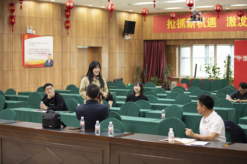 课间,为了让讲座更加生动有趣,赵楠老师还组织了互动环节。现场问答后,他让员工们进行即兴演唱,现场一对一的指导他们如何在没有伴奏的情况下保持音准和节奏,以及声乐演唱的行腔、吐字、运气等方面知识,让大家对声乐技巧有了更深层次的理解和认识,激发了员工们对声乐艺术的热情。