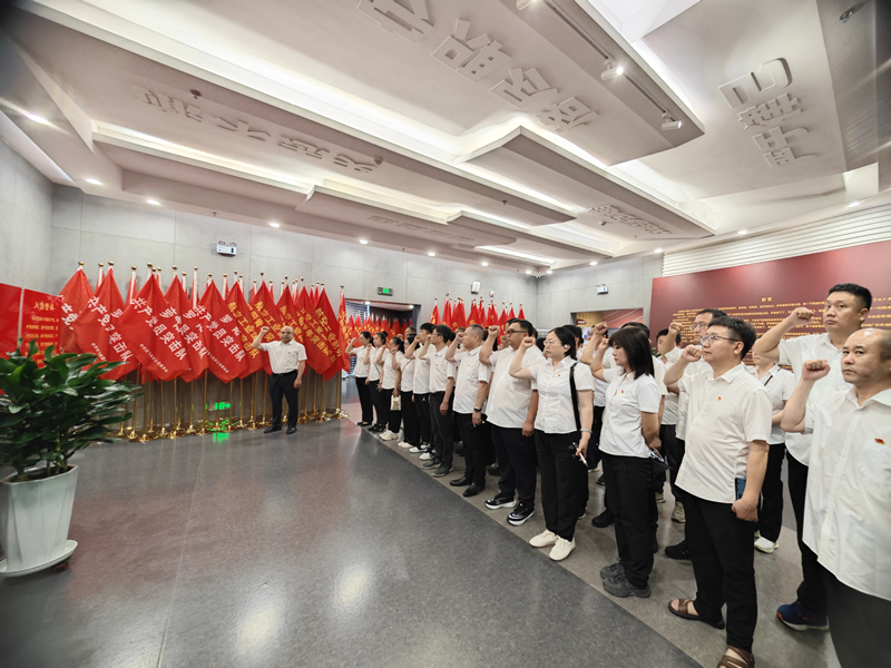 在沈飞航空博览园,大家通过参观珍贵史料与实物展品,深入了解我国航空工业从无到有、由弱到强的发展历程,深刻感受航空人攻坚克难、自主创新的奋斗精神。在罗阳先进事迹展区,大家驻足聆听,为罗阳同志献身祖国航空事业的感人事迹深深打动,纷纷表示,要从中国航空人身上汲取奋进力量,学习罗阳同志航空报国的拼搏奉献精神,在工作中要以模范人物为榜样,奋发进取,以实际行动践行党员的初心和使命。全体党员在鲜红的党旗前重温入党誓词,在铮铮誓言中砥砺前进初心,擦亮党员本色,坚定永远跟党走的理想信念。