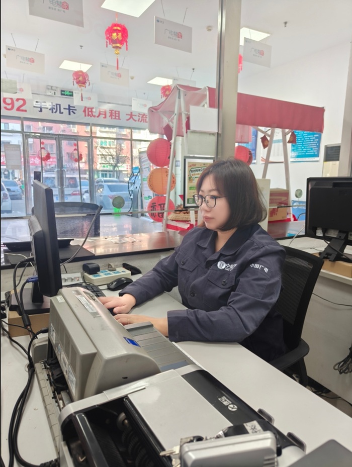 春节期间,中国广电鞍山公司统筹安排业务骨干值守一线,全力保障通信畅通、服务不停歇,用安心、高效、贴心的服务,守护市民新春幸福时光。中华北路营业厅营业员王智,已是连续多年主动值守除夕。她业务娴熟、服务细致,兼具专业能力与服务温度,是大家信赖的“广电贴心人”。 除夕当天,一对银发老人步履匆匆地来到营业厅。王智见状,立即上前耐心询问。原来,老人刚从外地返鞍,不巧错过了小区的光纤改造。了解情况后,她不仅细致讲解改造政策与优惠方案,还发现老人家中仍在使用老式机顶盒。为了让老人能及时看上清晰的春晚,王智主动推荐了 4K 超高清机顶盒与光纤网络,全面升级家庭视听与网络体验。在完成业务办理后,她第一时间联动值班网格人员,快速协调安装事宜,实现了“当天办理、当天安装”。高效便捷的暖心服务,让两位老人感动不已,连连为广电人的速度与温度点赞。