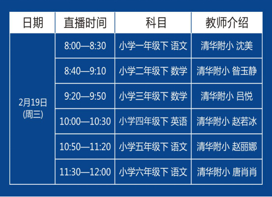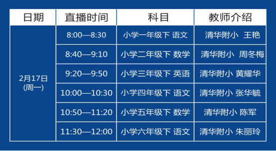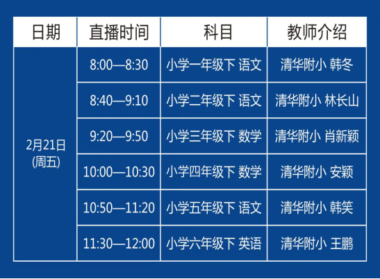 2月17日——2月21日:每天8:00—12:00首播, 具体课程安排请以实际播出内容为准。