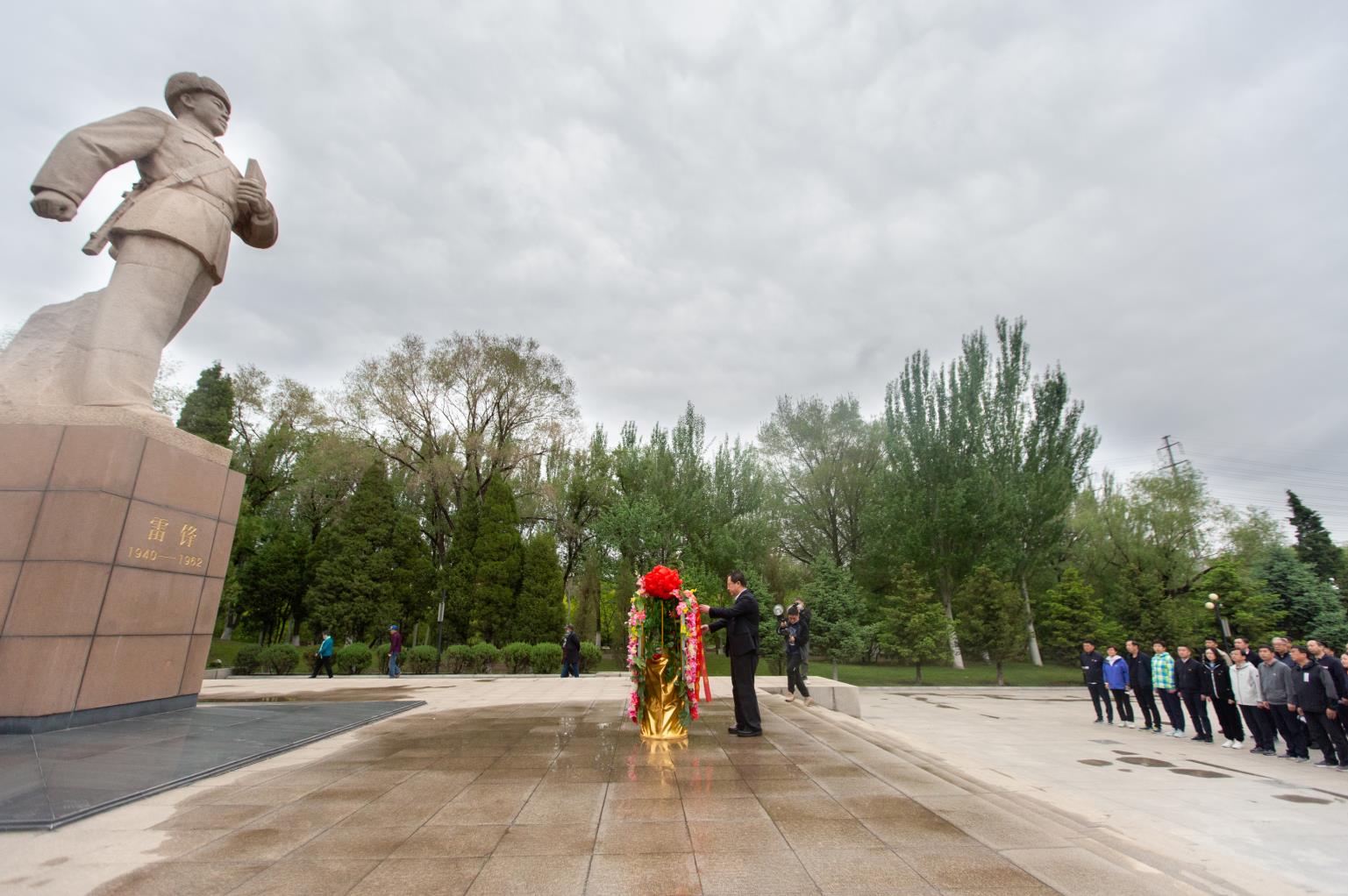 15日下午14时,培训班组织大家参观了位于抚顺市望花区的“雷锋纪念馆”。在雷锋塑像前广场,全体学员怀着崇敬的心情隆重集会,列队肃立,举行向雷锋墓敬献花篮仪式。宣读祭文、集体默哀后,曾绍武董事长上前整理花篮缎带,全体学员向雷锋塑像三鞠躬,并依次绕行瞻仰雷锋墓,追思雷锋同志的先进事迹。
