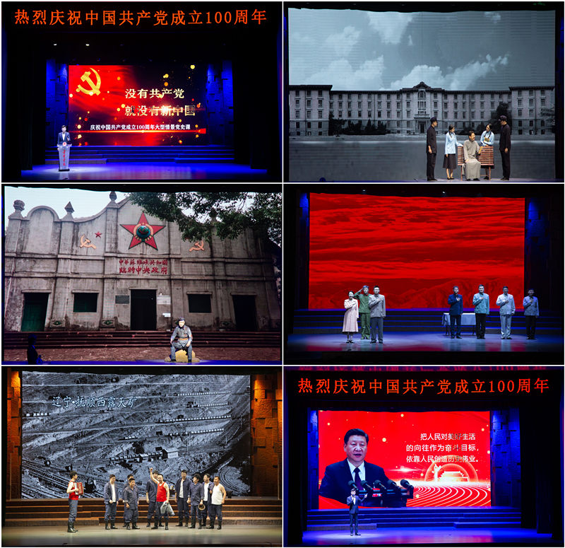 报告会后,伴随着《没有共产党就没有新中国》的乐曲声,大型情景党史课《没有共产党就没有新中国》拉开序幕。情景党史课共分为真理的求索、血染的征程、激情的岁月、改革的春风、复兴的交响五个篇章,生动还原了中国共产党走过的百年奋斗历程,在学员中引起强烈的反响。《新青年》创刊开启了新文化运动;“红船”上的会议点燃了革命的火种;过雪山草地,数万红军战士为革命牺牲……伴随着光、影和演员们的生动演绎,一幕幕历史场景真实再现,让学员们潸然泪下,热血沸腾,更加坚定了跟党走的信念。