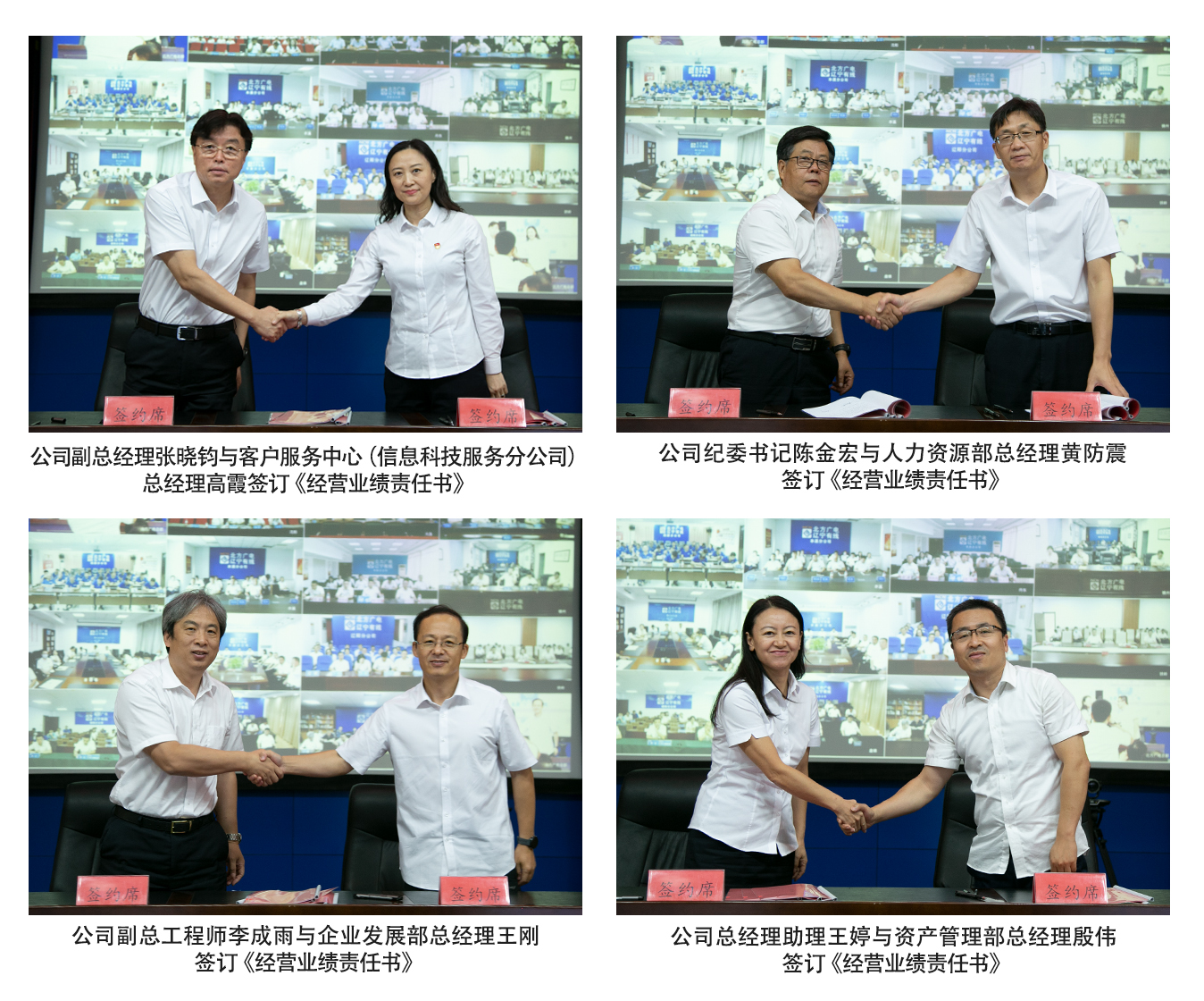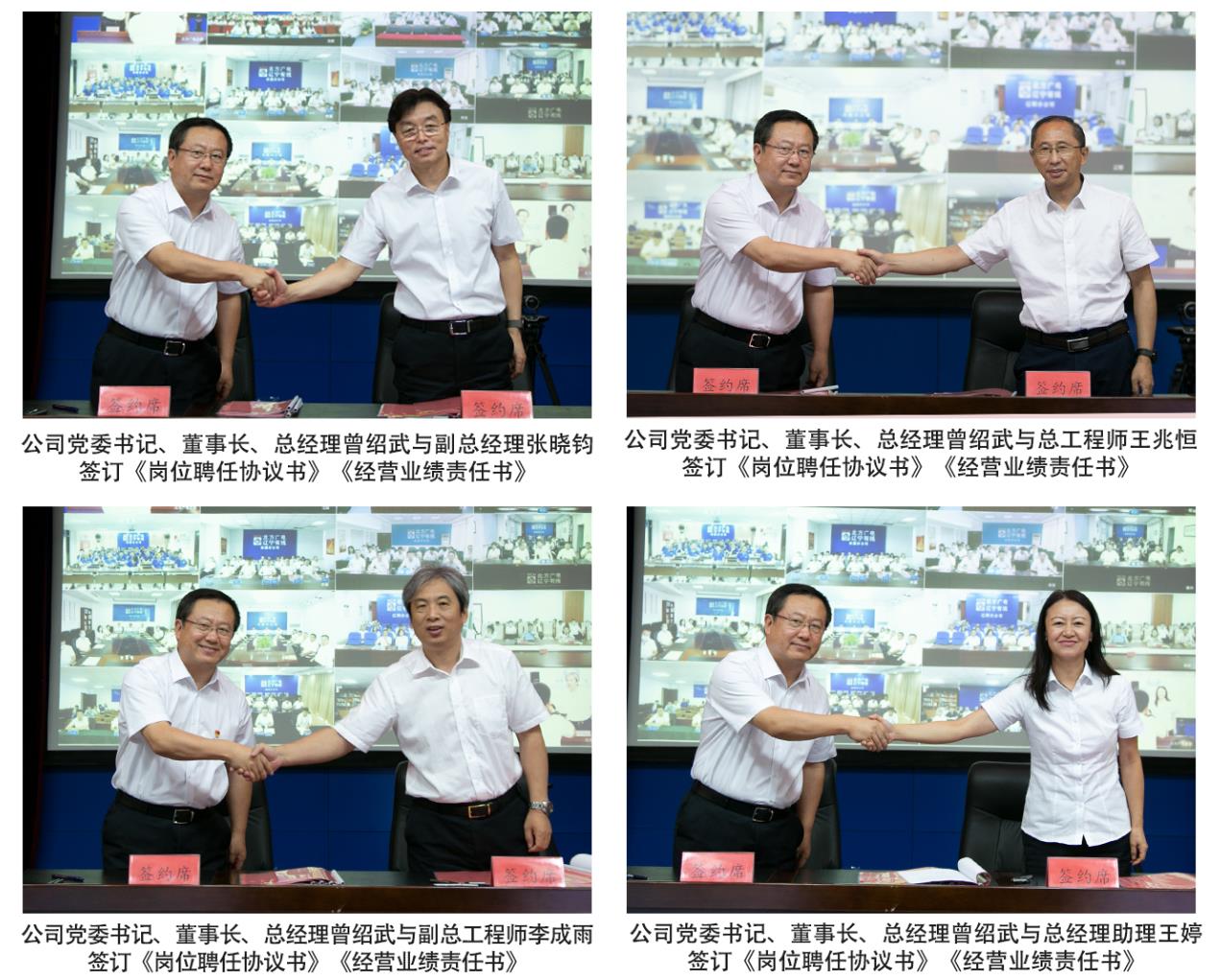 会上,公司党委书记、董事长、总经理曾绍武与公司经理层成员签订了岗位聘任协议书,并与公司副总经理、总工程师、总助级领导以及17家分(子)公司总经理签订了任期和年度经营业绩责任书。省公司领导与分管的职能部门经理层成员,分公司总经理与其他班子成员签订经营业绩责任书。通过契约化形式对经理层成员任期、职责范围、年度及任期绩效考核指标、薪酬兑现、退出机制等进行了约定。