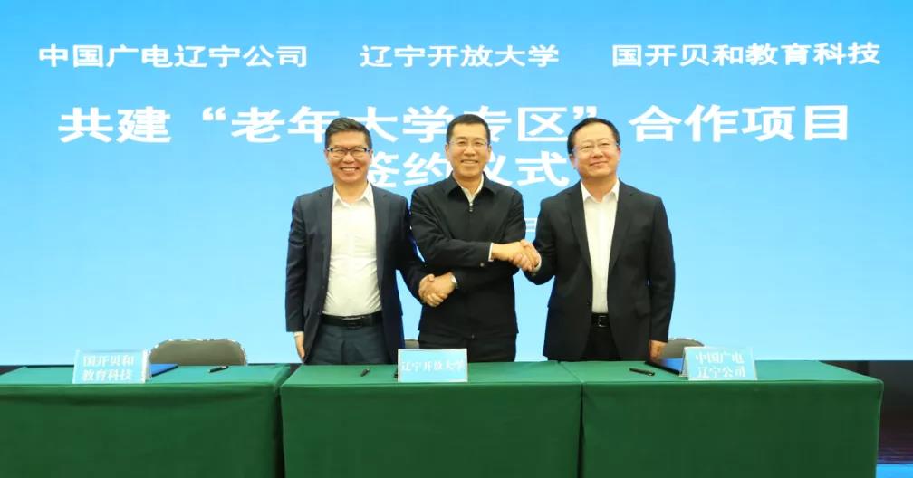 签约仪式上,与会领导共同启动辽宁“老年大学互动服务平台”开通仪式。首个合作试点由中国广电辽宁公司与国家开放大学辽宁分部承接,并由中国广电辽宁公司党委书记、董事长、总经理曾绍武、辽宁开放大学党委书记伊焕斌、国开贝和教育科技(北京)有限公司总经理杨守君签订了项目合作协议,共同开发建设了辽宁“老年大学互动服务平台”,平台汇聚优质老年教学资源,通过点播、轮播以及直播等方式,向广大老年学员提供全面的线上授课服务,探索“康养学游”老年教育新模式。