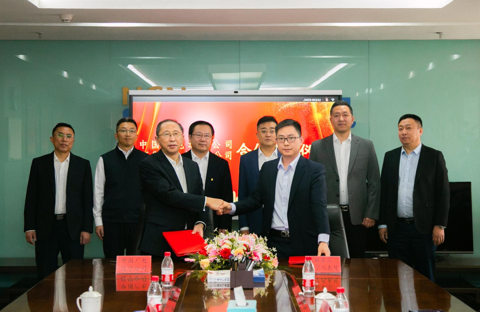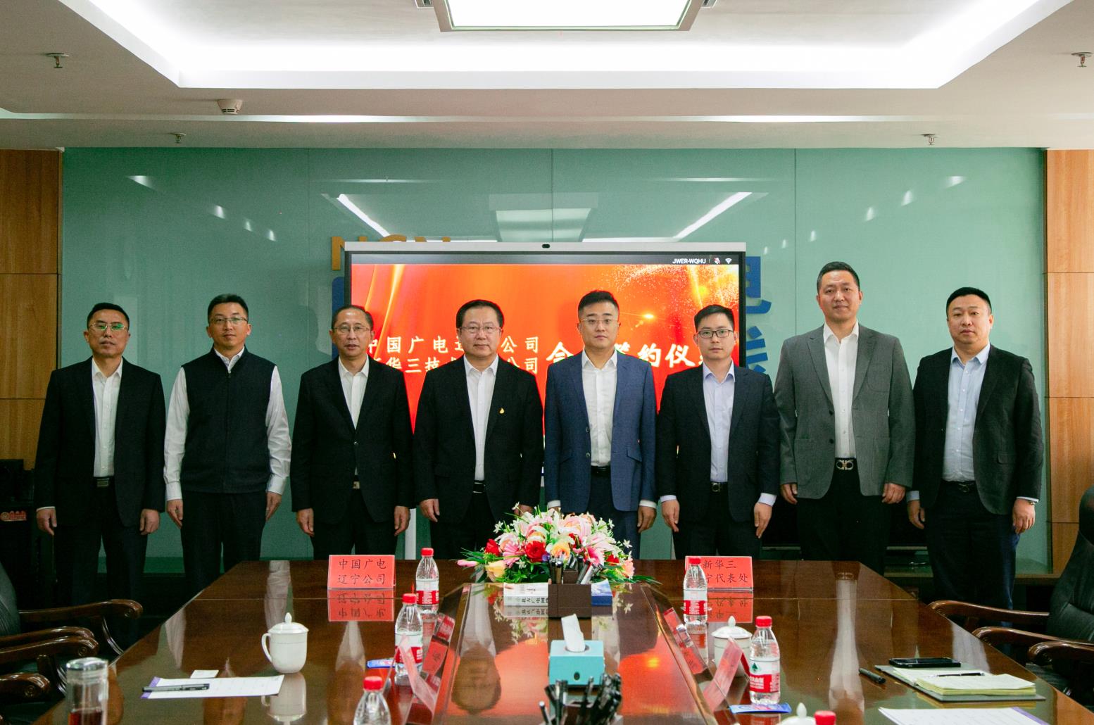 中国广电辽宁公司技术工程部(5G建设中心)总经理李大明、信息管理部总经理郑庆刚、新华三辽宁代表处运营商主管李威、广电销售经理彭磊出席了签约仪式。