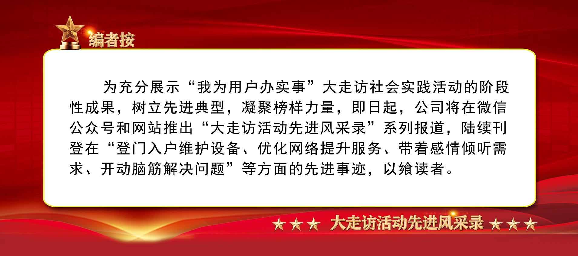 在连山区大走访的过程中,部分用户反应机顶盒点播业务间歇性异常,数据组立刻展开排查,最终确定故障原因是由于用户的错误操作,导致无法获取正确的IP地址而影响使用。数据组同志连夜起草解决方案,对相关汇聚交换机进行优化设置,从根本上解决了该问题。去用户家做回访时,用户们纷纷为他们的办事效率竖起大拇指,为表示感激,近十余位用户在回访过程中直接办理业务套餐。十月走访中,部分宽带用户反映家中网络偶尔出现卡顿,数据组确认为部分汇聚、接入设备安装较早,版本过低,存在版本BUG。为不影响用户的正常使用,同志们在凌晨三点半之后对相关的设备进行了版本升级,彻底解决了卡顿现象,提高了用户的用网体验。
