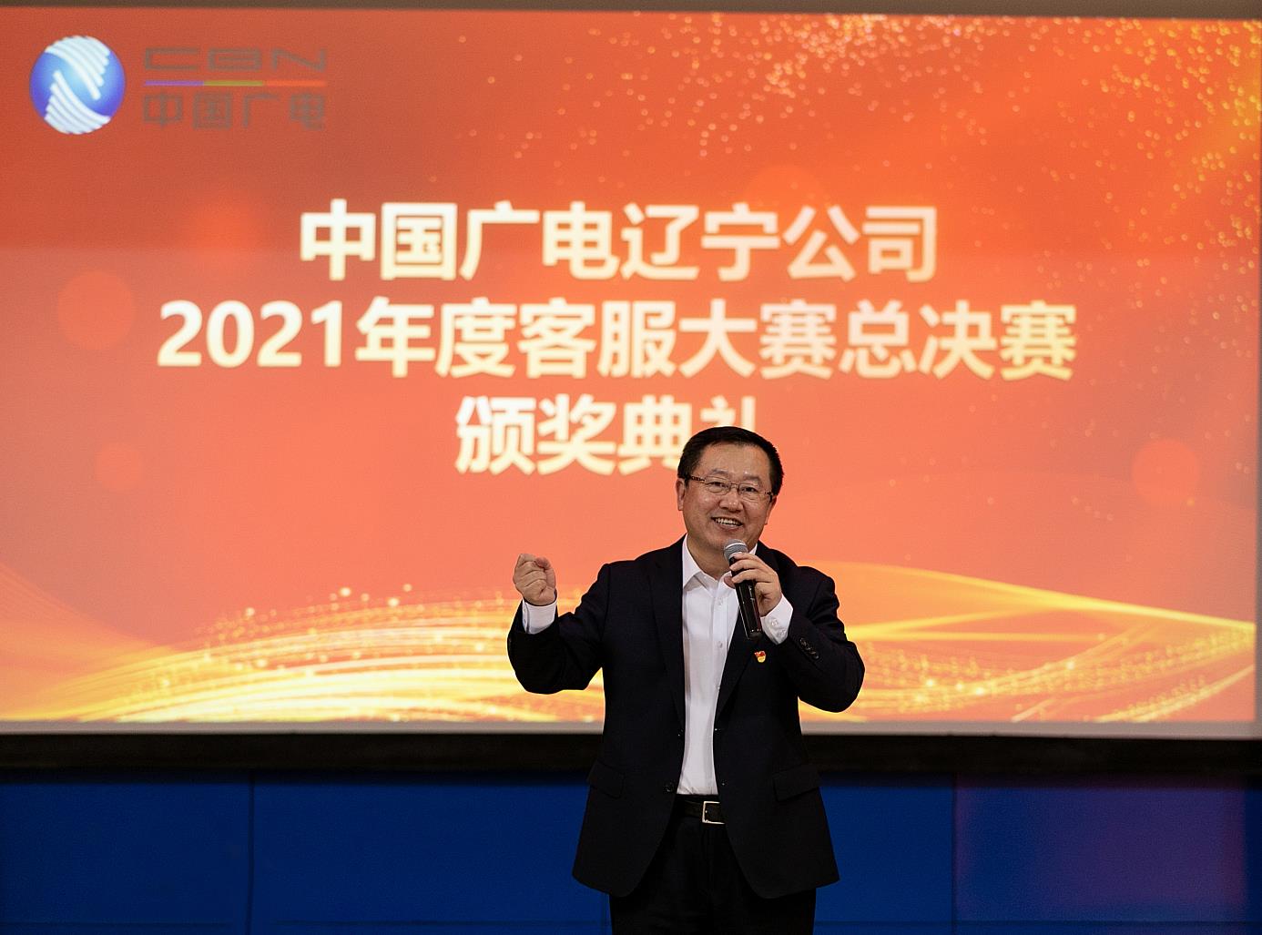 颁奖仪式结束后,公司党委书记、董事长曾绍武发表了热情洋溢的讲话。他首先向获奖个人和集体表示祝贺,向积极参与大赛的员工和各分(子)公司表示感谢,对赛事组委会的精心组织表示赞扬。他表示,此次大赛在公司去年首届客服大赛的基础上,对形式进行了创新、对内容进行了丰富、对范围进行了拓展,取得了良好的成效。在竞赛过程中,每名选手都能高度重视、认真准备,赛出了能力,赛出了水平,赛出了辽宁广电人积极向上的精神风貌,为大家点赞!曾绍武董事长指出,中国广电辽宁公司属于服务型企业,服务是企业赖以生存的基础,我们要始终秉持“服务至上”的理念,努力提升为用户服务的质量。距离2022年还有15天时间了,希望大家能够带着本次大赛的丰硕成果回到工作岗位上,勤勉工作,努力做好年度冲刺、年终收尾和新年“开门红”工作,共同为公司转型升级高质量发展做贡献,迎接更加美好的未来!
