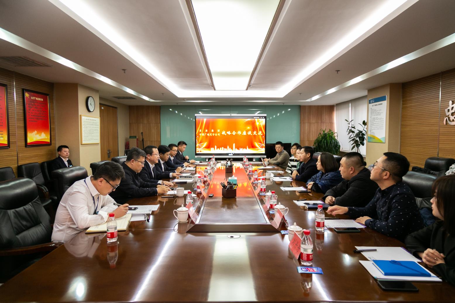 龙宝正副总裁积极评价了双方公司的合作前景,他表示,京东集团与中国广电辽宁公司的合作是在全国范围内民营企业与央企合作的深入探索,也是落实数字辽宁建设的具体举措。双方的合作内容虚实结合,远近结合,希望未来能够合作共赢,互惠互利,基于中国广电辽宁公司的应用场景和京东集团的优势特色,就电视商城、零售慧采平台、智能客服、广电5G建设、IDC业务、广电数字化转型、智慧城市建设等方面开展合作,强强联合,探索破局,共同开创互利共赢的良好合作局面。