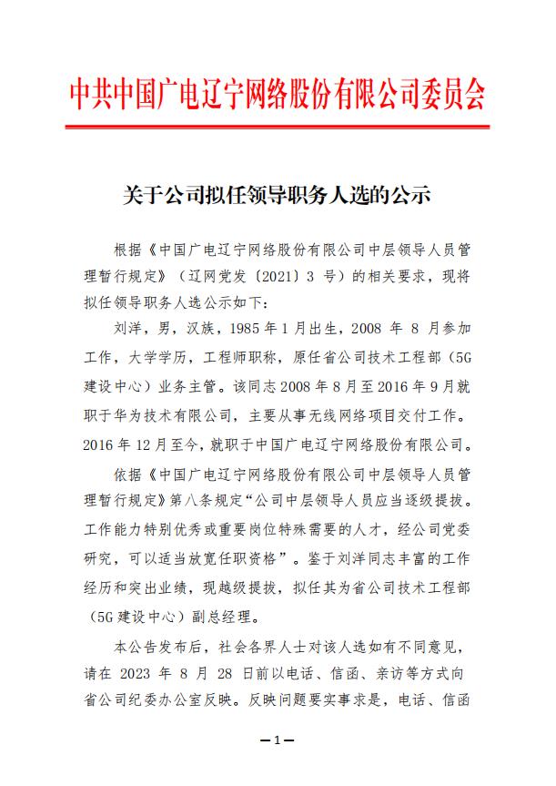 关于公司拟任领导职务人选的公示