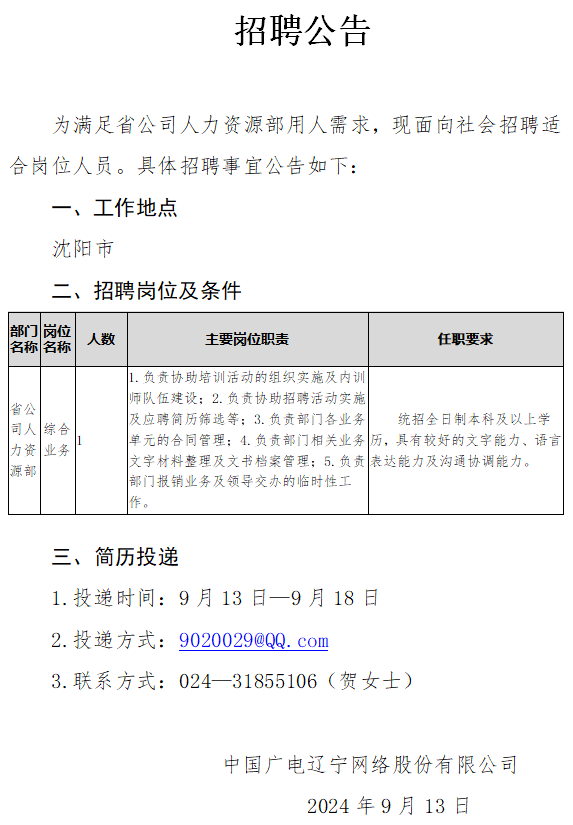 3.联系方式:024—22005033(胡先生)
